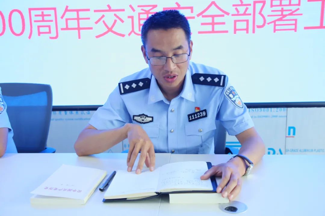 首先,大队长叶维民传达学习了省市近期道路交通安保工作会议部署要求,结合当前辖区面临的交通安全形势,就全力做好建党百年交通安保工作,提出了明确要求。