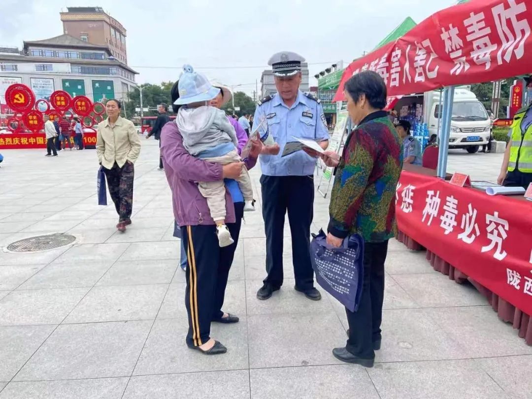 “6.26”是国际禁毒日,为进一步增强人民群众抵制毒品的意识,积极宣传毒驾的危害,6月25日,陇西县公安局交警大队以“6.26国际禁毒日”活动为契机,在人民广场积极开展道路交通安全宣传活动。
