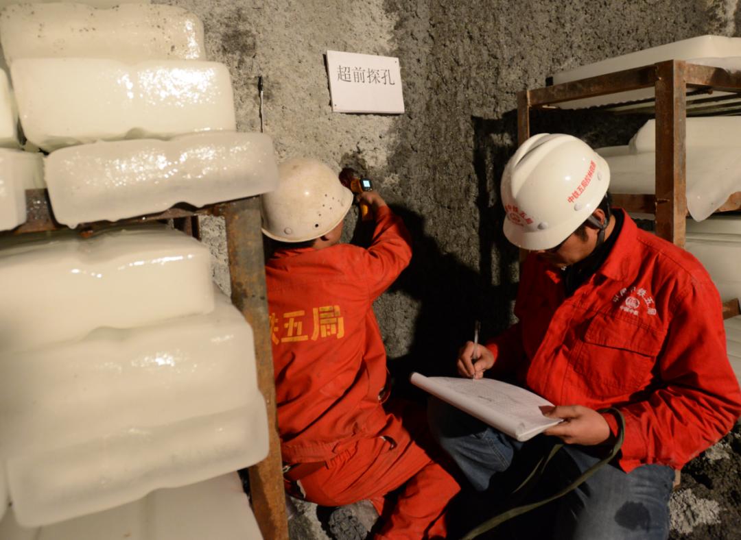 ▲在桑珠岭隧道,建设者通过测温、制冰应对高岩温