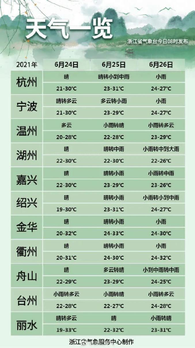 明天开始全省将逐渐变天:浙南和沿海地区多云到阴,局部阵雨;其它地区多云,傍晚到夜里转阴部分有阵雨或雷雨。