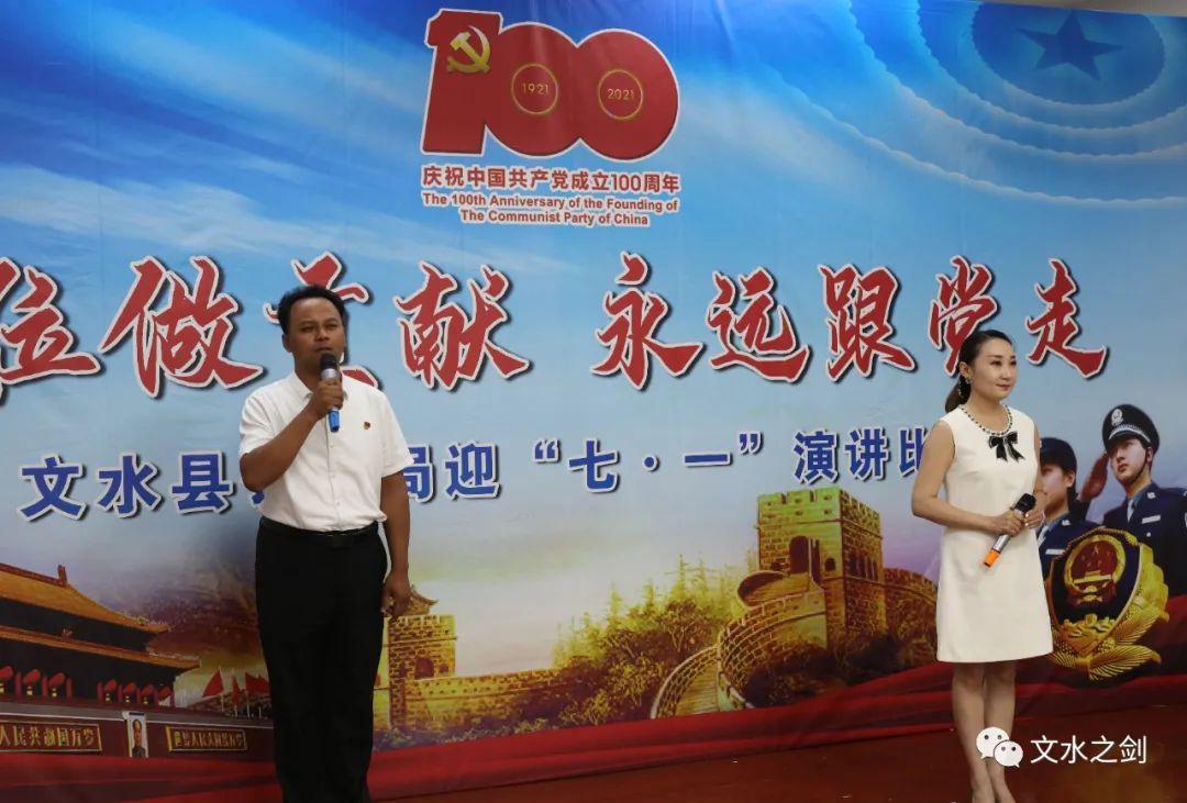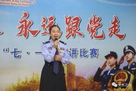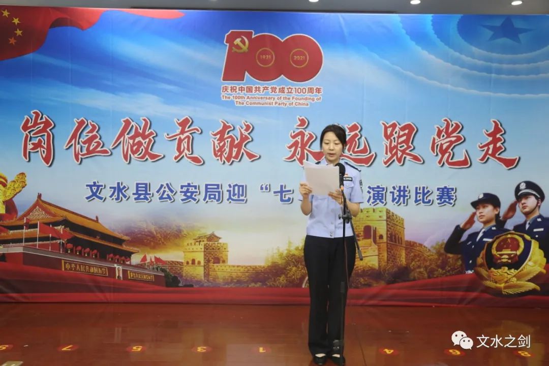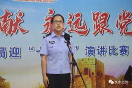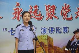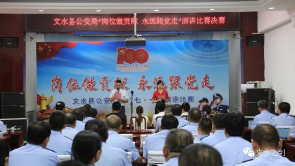 6月25日,文水县公安局举行“岗位做贡献 永远跟党走”演讲比赛决赛暨“两优一先”、重点工作表彰大会。全体局领导、各派出所、局机关负责人、参加演讲比赛决赛选手及各类获奖民警代表共100余人参会。