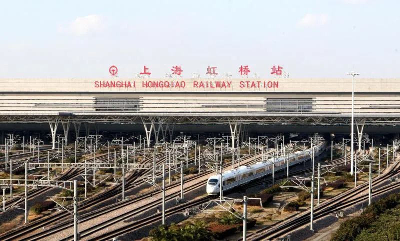 一趟高铁列车从上海虹桥站驶出 许文峰 摄新图中,经由京沪高铁往返长三角地区和北京南站间的高铁列车由86对增至93对,其中时速350公里“复兴号”列车由15对增加至21对。