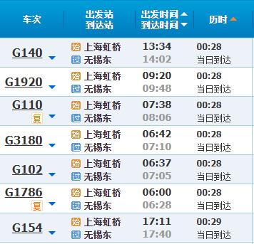 部分车次信息无锡