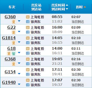 部分车次信息徐州
