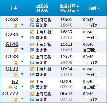 部分车次信息常州