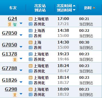 部分车次信息苏州