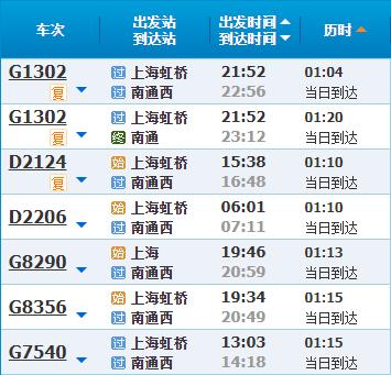 部分车次信息南通