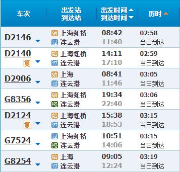 部分车次信息连云港
