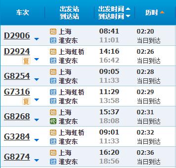 部分车次信息淮安