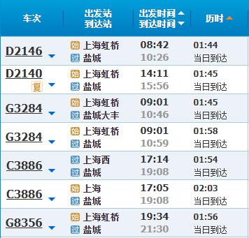 部分车次信息盐城