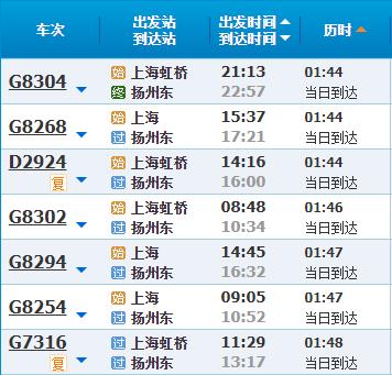 部分车次信息扬州