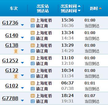 部分车次信息镇江