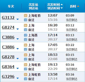 部分车次信息宿迁