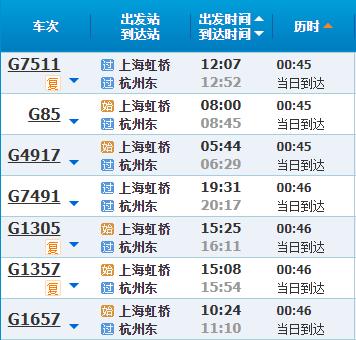 部分车次信息浙江