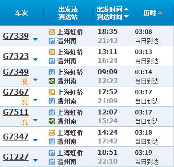 部分车次信息温州