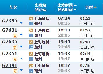 部分车次信息湖州