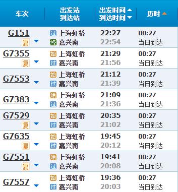 部分车次信息嘉兴
