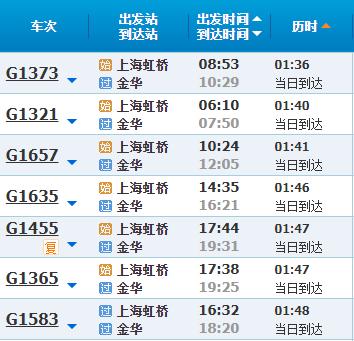 部分车次信息金华