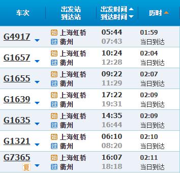部分车次信息衢州
