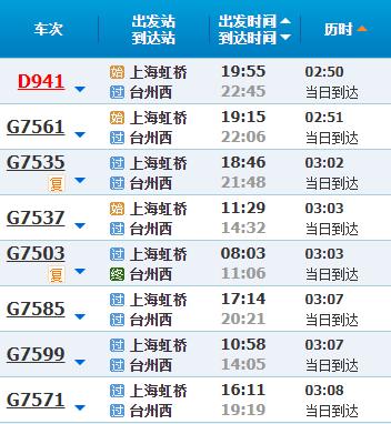 部分车次信息台州