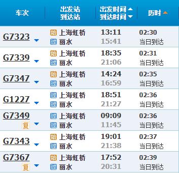 部分车次信息丽水