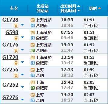 部分车次信息安徽