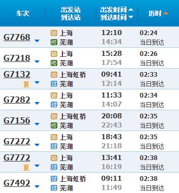 部分车次信息芜湖