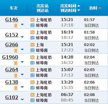 部分车次信息蚌埠