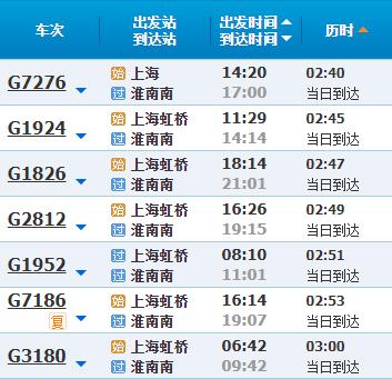 部分车次信息淮南