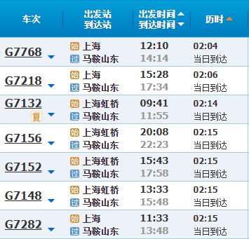 部分车次信息马鞍山