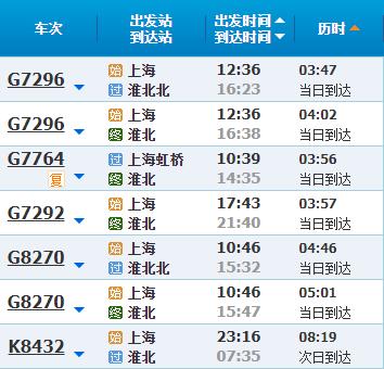 部分车次信息淮北