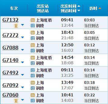 部分车次信息铜陵