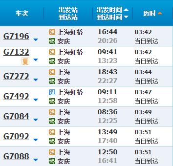 部分车次信息安庆