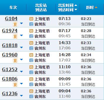 部分车次信息宿州