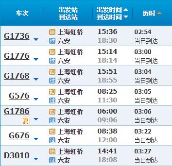 部分车次信息六安