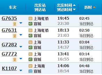 部分车次信息宣城