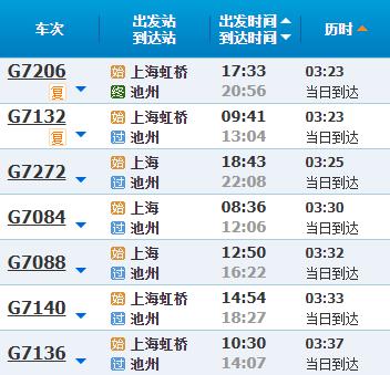 部分车次信息池州