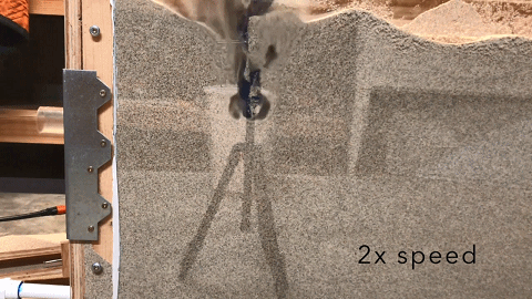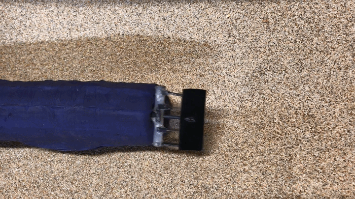 ▲策略2:空气流体纳克莱里奥说:“我们发现的最大挑战,也是花费时间最长的问题是,当我们切换到机器人在水平方向上挖洞时,我们的机器人总是会浮出来。”他解释道,尽管气体或液体可以均匀的在对称物体的上方和下方产生流动,但在流化沙中,力的分布并不平衡,并且对水平运动的机器人产生了显著的上升力。“将沙子推开,比将其压实要容易得多。”