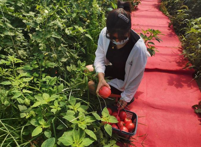 在于家庄村另一个大棚里草莓柿子也已经陆续成熟