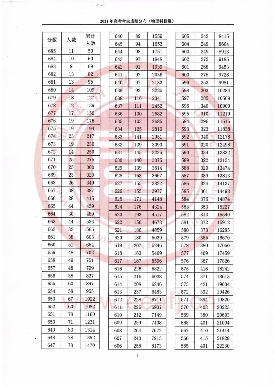所谓“一分一段”,就是以“1分为单位”,统计考得该分数的考生人数和累计人数。物理科目组、历史分数组分开排名,每个分数段上有多少人一目了然。今年我省“一分一段表”公布至200分,艺术、体育类文化成绩排序包含在普通物理、历史科目组中,不单独公布。