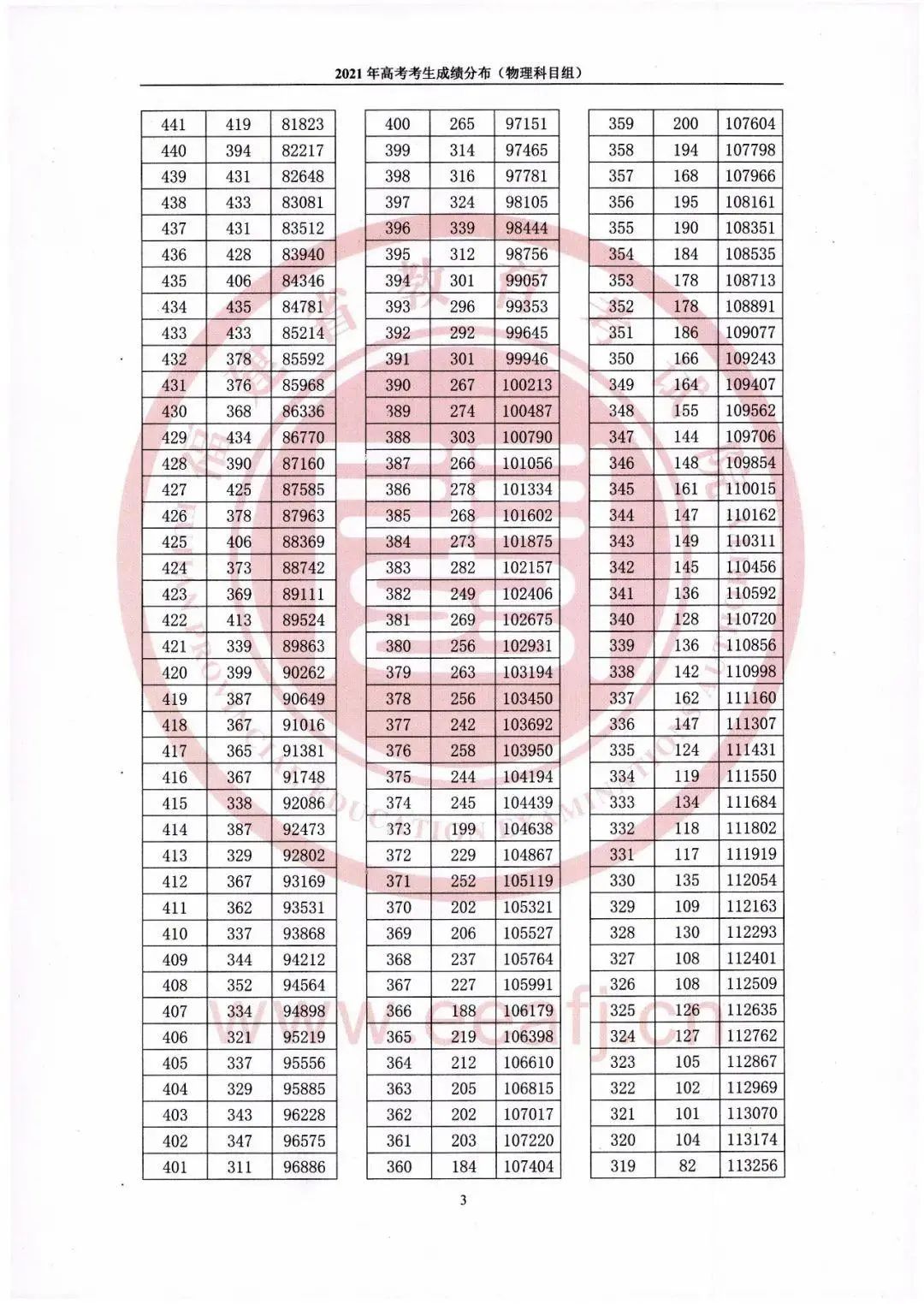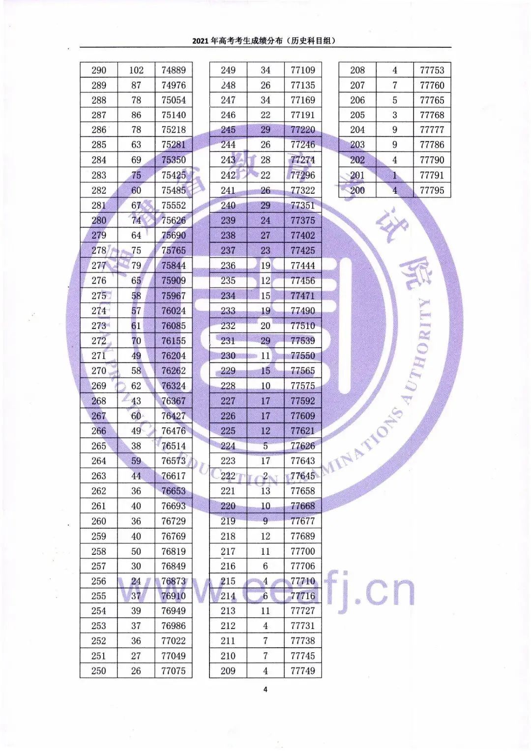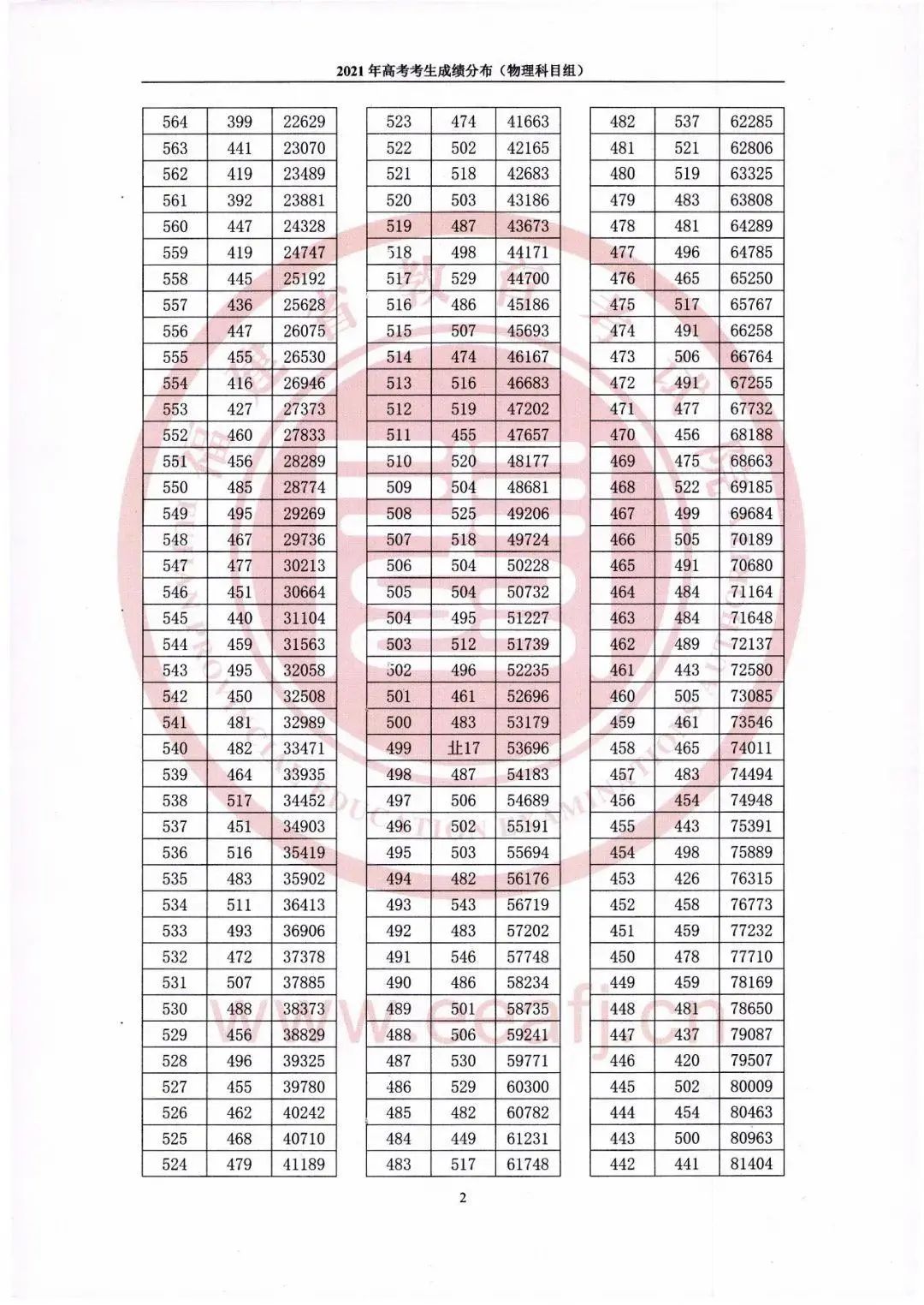 2021年福建省高考考生成绩分布统计表