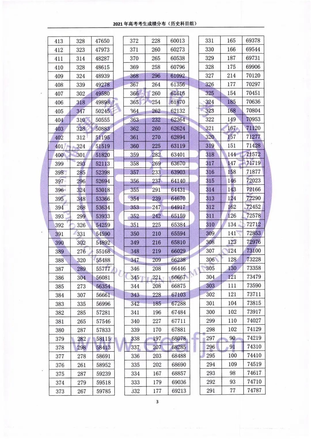 2021年福建省高考考生成绩分布(历史科目组)