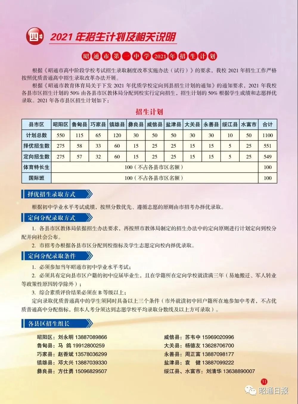 昭通一中、区一中、云天化中学、镇雄一中,高一招生计划来了