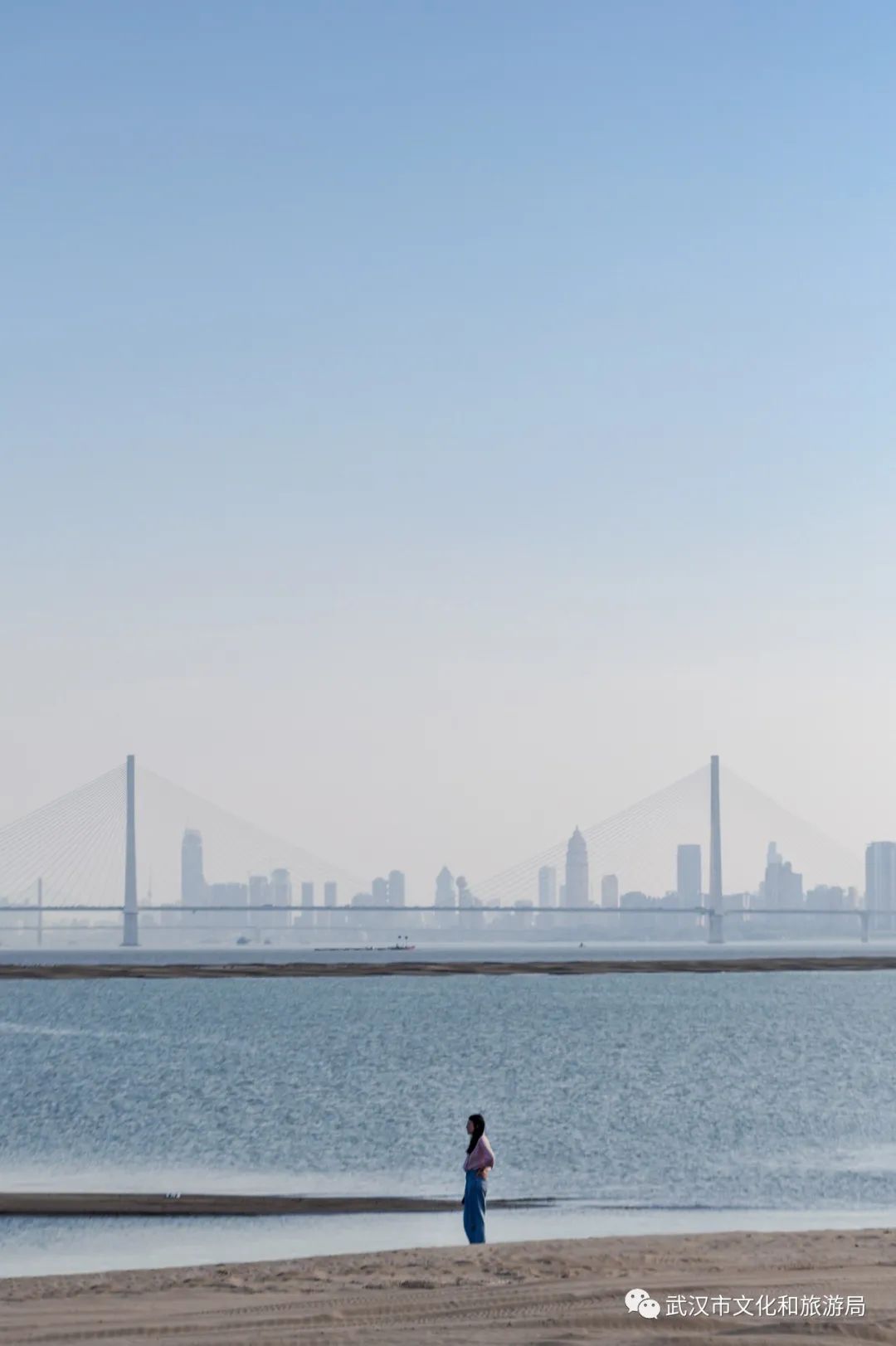 从沙滩远眺,目尽之处是长江上一座座大桥飞架南北和层层叠叠的高楼大厦。停车于此,分分钟拍出广告级大片。