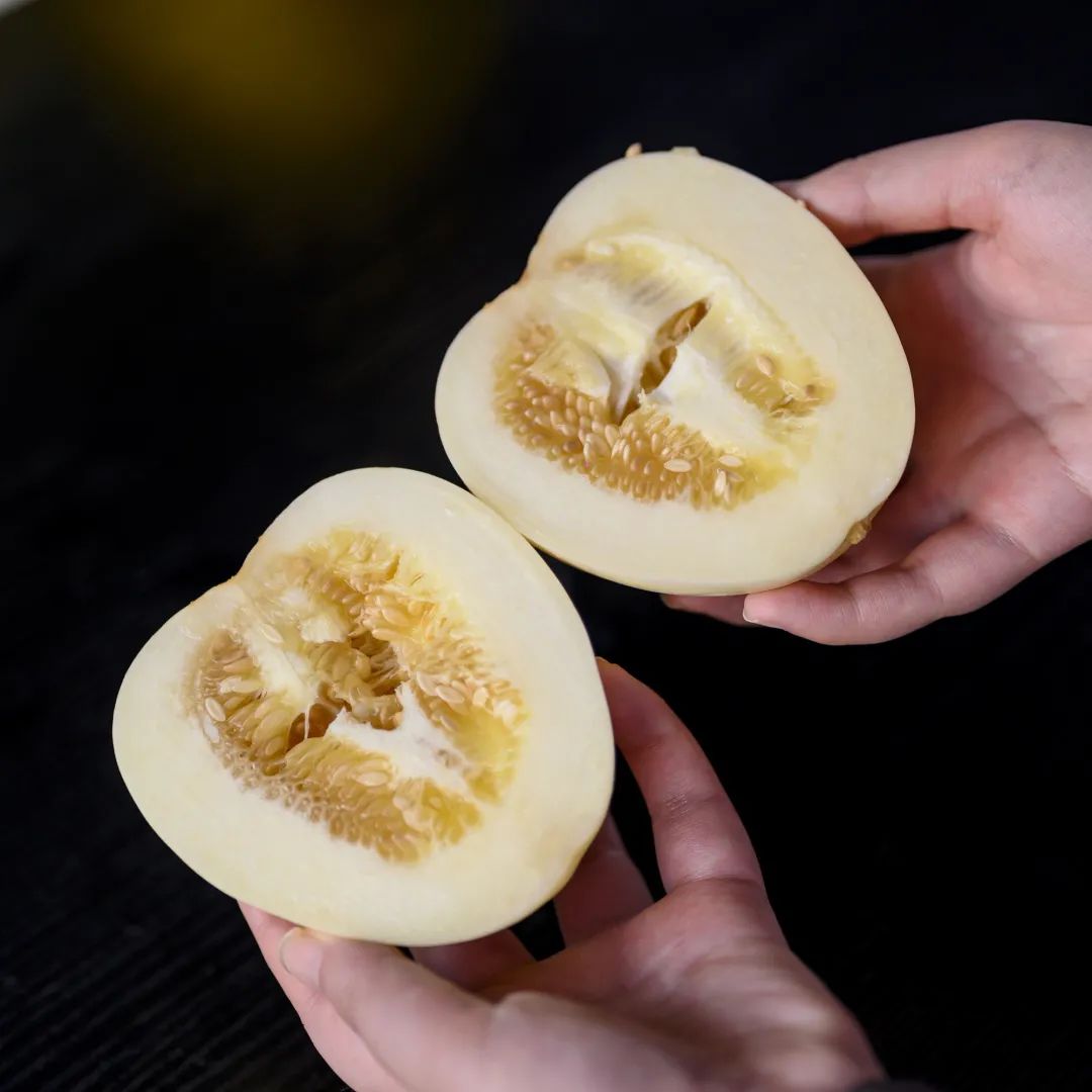 ■ 白沙蜜:武汉人称它为「甜宝」,也是文旅君从小吃到大的瓜,样子白白胖胖,皮薄肉嫩,含水量适中、咬下一口,就像吃了蜜一样甜。