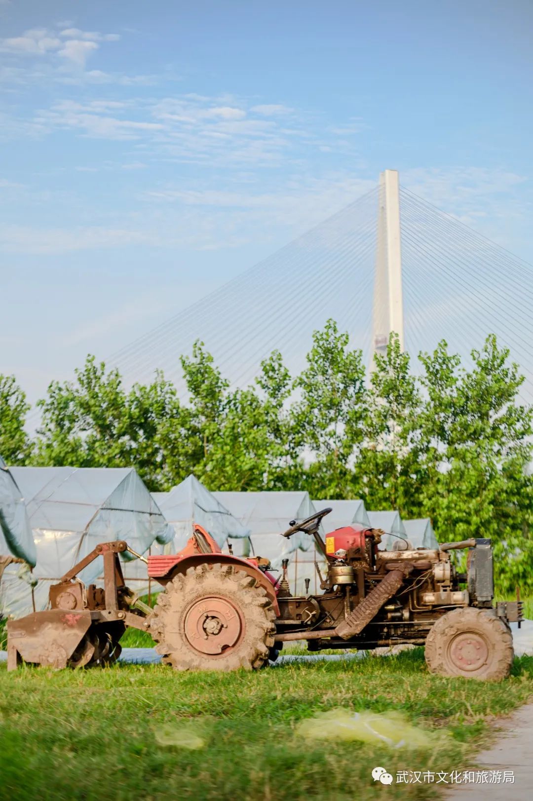 △2018年,武汉市农科院与岛上的瓜农们合作建立的“瓜博园”,引进了100多个国内外优良的西甜瓜品种。同年7月12日,天兴洲的西瓜还代表武汉水果亮相外交部晚宴,口感惊艳了在场的国内外政府要员。好吃佬文旅君,也耐不住了。驾车从天兴洲大桥的天兴洲闸道口拐出,抵达修建在江堤上的环岛路,一边是江水,一边是密林,阳光明媚的日子,会让人有种来到东南亚的感觉(看起来就很适合种瓜)。