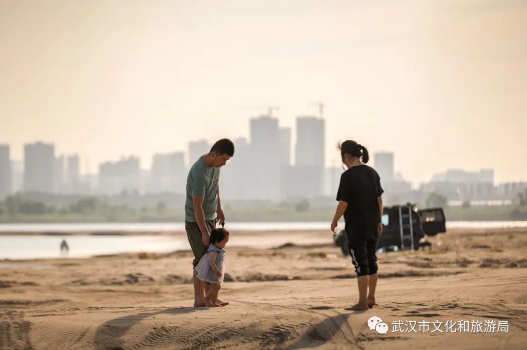 天兴洲四面环水,夏天温度比市内低3-4 度,驾车上洲,连空调都不用开了。枯水季节,还可以在洲头看到一片沙滩,这里的沙子很细,踩在上面就像踩在棉花上一样软绵。