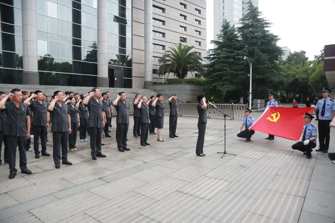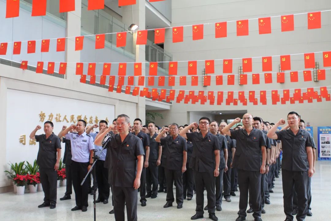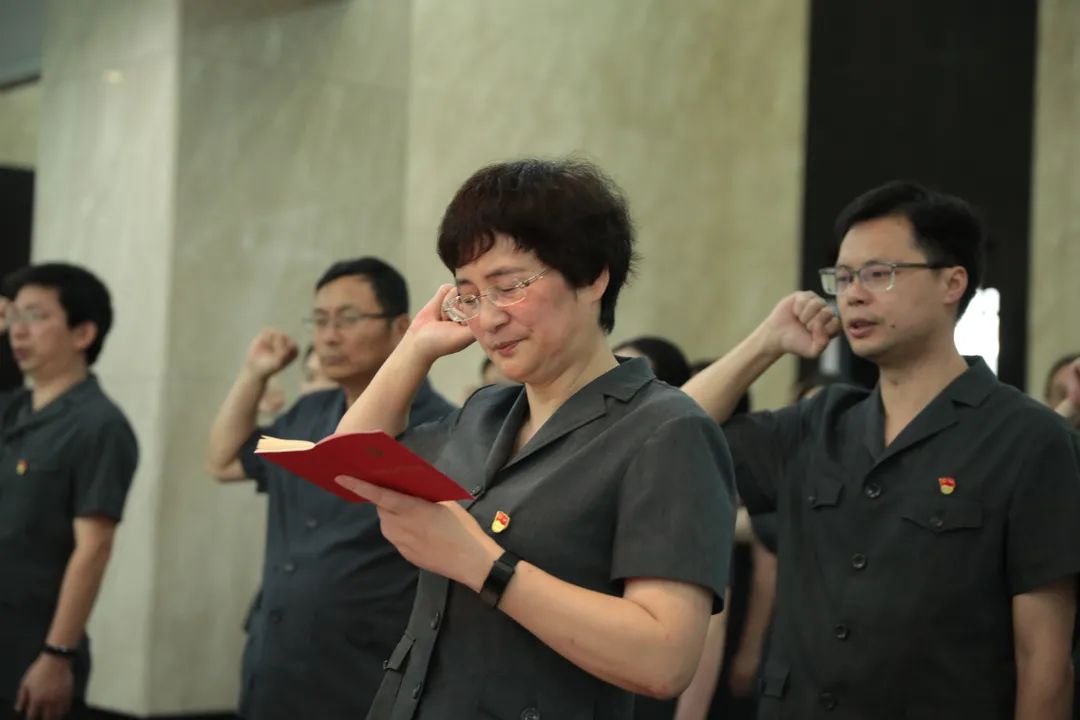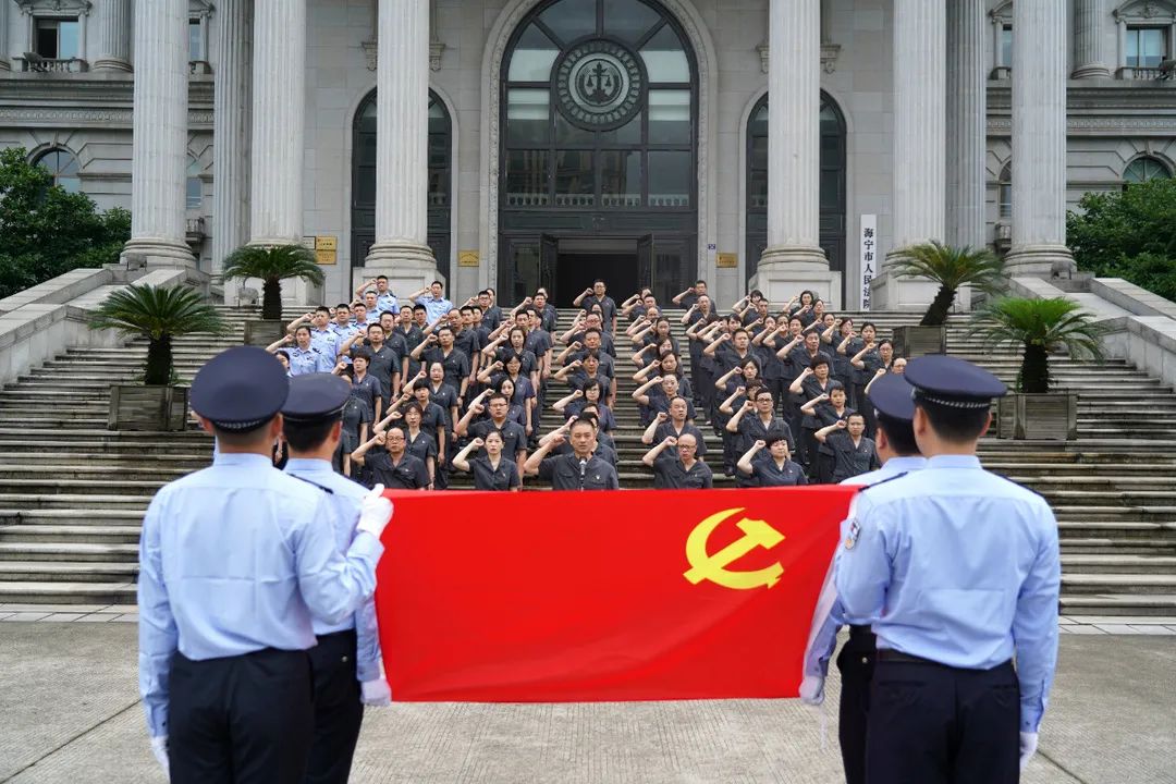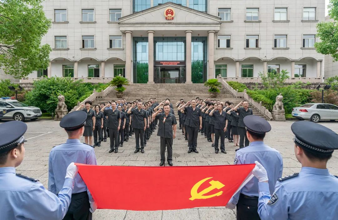 当天,全省中基层法院共同举行党员重温入党誓词活动,庄严承诺响彻浙江上空。
