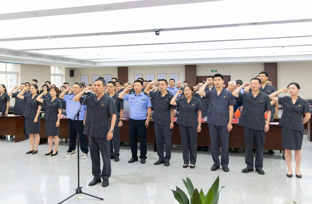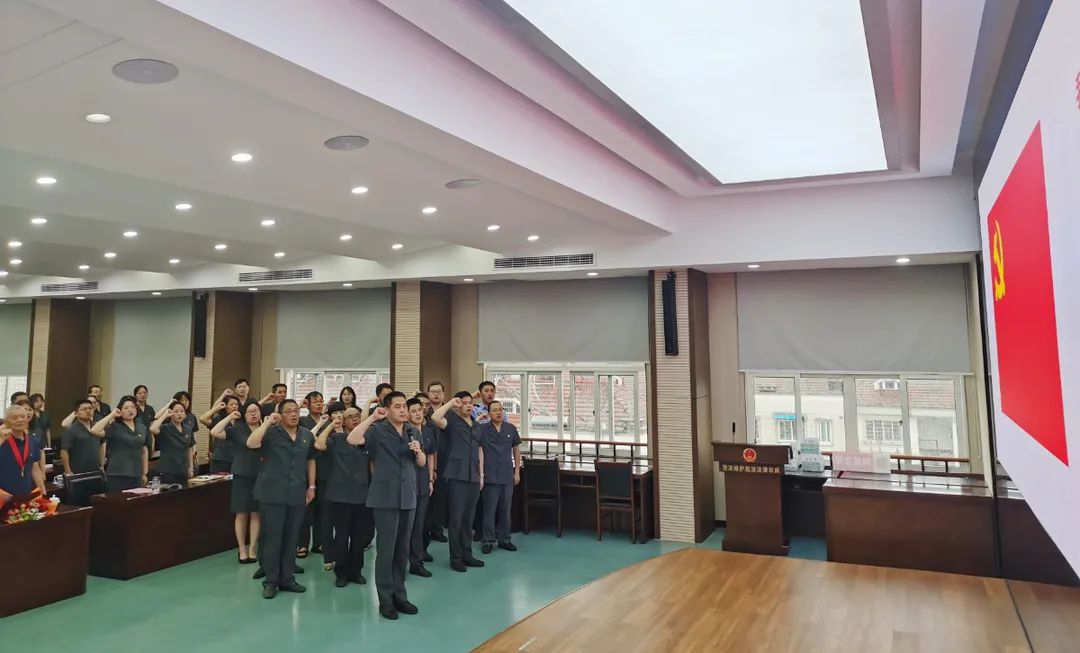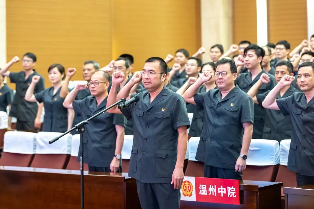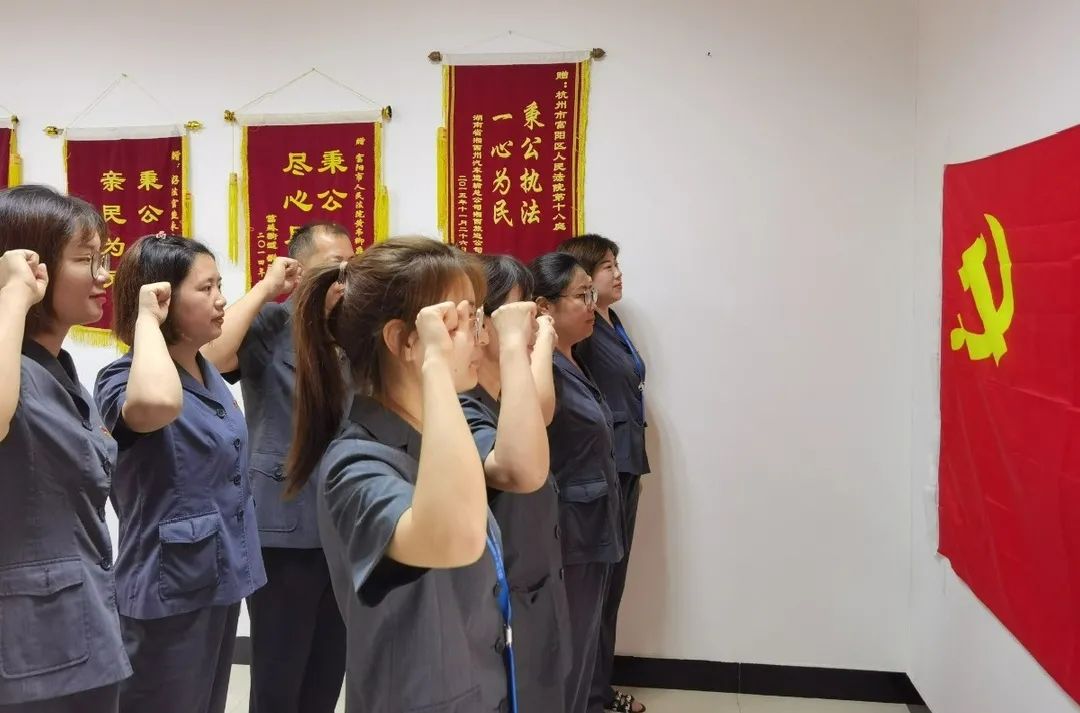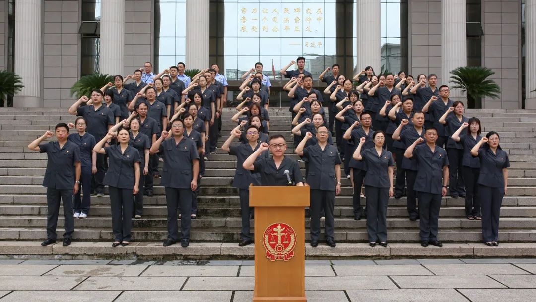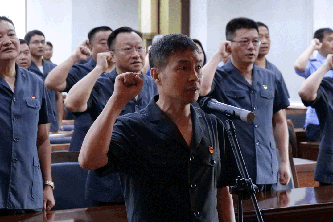 当天,全省中基层法院共同举行党员重温入党誓词活动,庄严承诺响彻浙江上空。