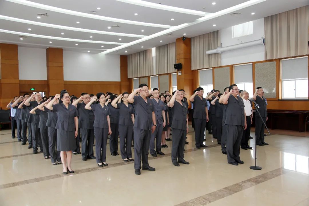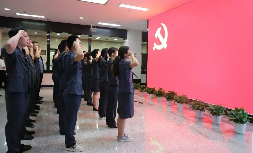 6月28日上午9:00,铿锵庄严的誓言在杭州市马塍路5号响起,浙江省高级人民法院全体党员一同面对鲜红的党旗,重温入党誓词。重温入党誓词,是浙江法院庆祝中国共产党成立100周年活动的重要组成部分,一字一句神圣豪迈,铮铮誓言沸腾热血,感召各位党员政治忠诚、信念坚定,自觉奋斗、奉献终身。